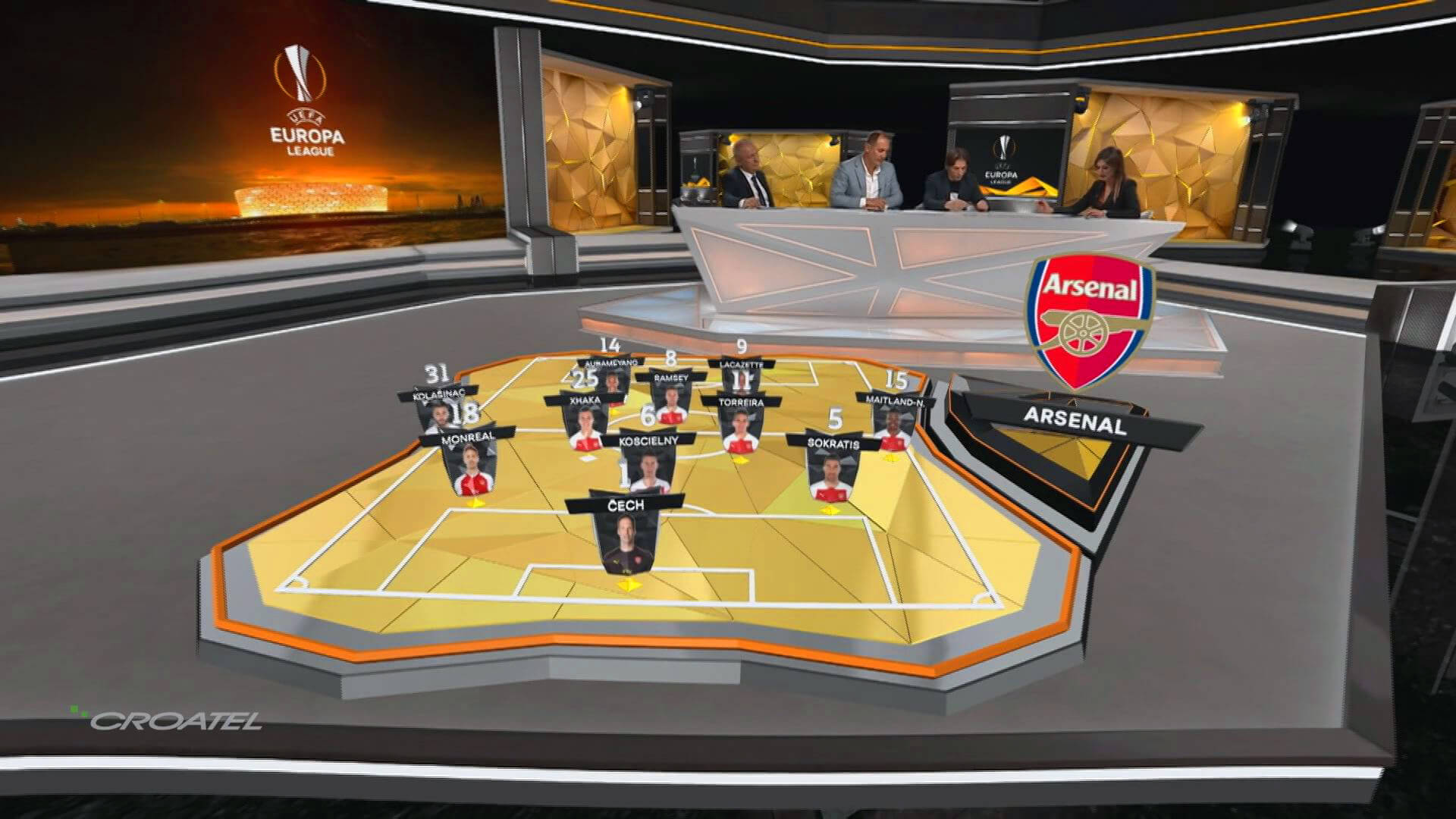 Design and Production of sport shows and events includes conceptual design, 3D modelling and texturing, virtual studio setup and real studio expansion with 3D Augmented reality. Some of CROATEL’s realized projects include sports shows like Formula One studio, UEFA Europa League studio, 2020 Croatian presidential election and 2020 Croatian parliamentary election.